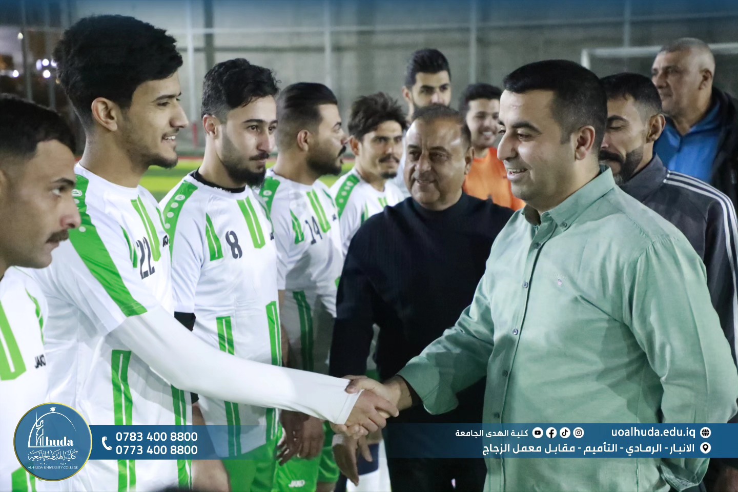 Under the patronage of the esteemed Dean of Al-Huda University College, Professor Dr. Omar Abdulkareem Jassim, the Dean’s Ramadan Football Championship, organized by the Student Activities Division, kicked off today, Monday, 2/3/2026, amid an enthusiastic sporting atmosphere and strong student attendance.
