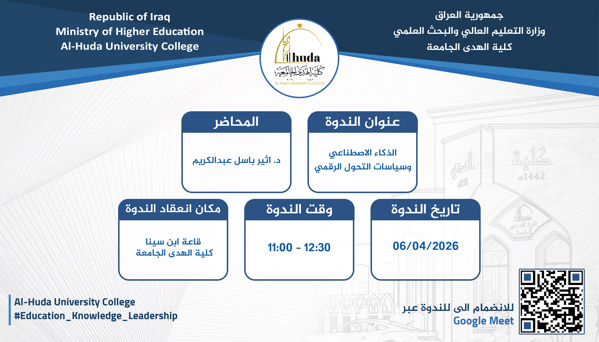 Under the sponsorship of Professor Dr. Abdul-Ilah Thabet Muhammad, Dean of Al-Huda University College, and in cooperation with the Accountants and Auditors Syndicate within the framework of joint scientific and professional cooperation.
