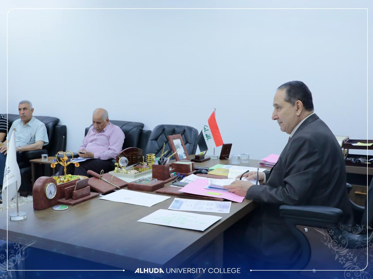 At exactly ten o'clock, headed by Prof. Dr. Abd al-Ilah Thabet Muhammad, Dean of the College, in the presence of the members of the Council, where the directives of the Ministry of Higher Education and Scientific Research / Department of Private University Education were discussed, and the axes and paragraphs included in the agenda of the session, and the necessary decisions and directives were taken in this regard.