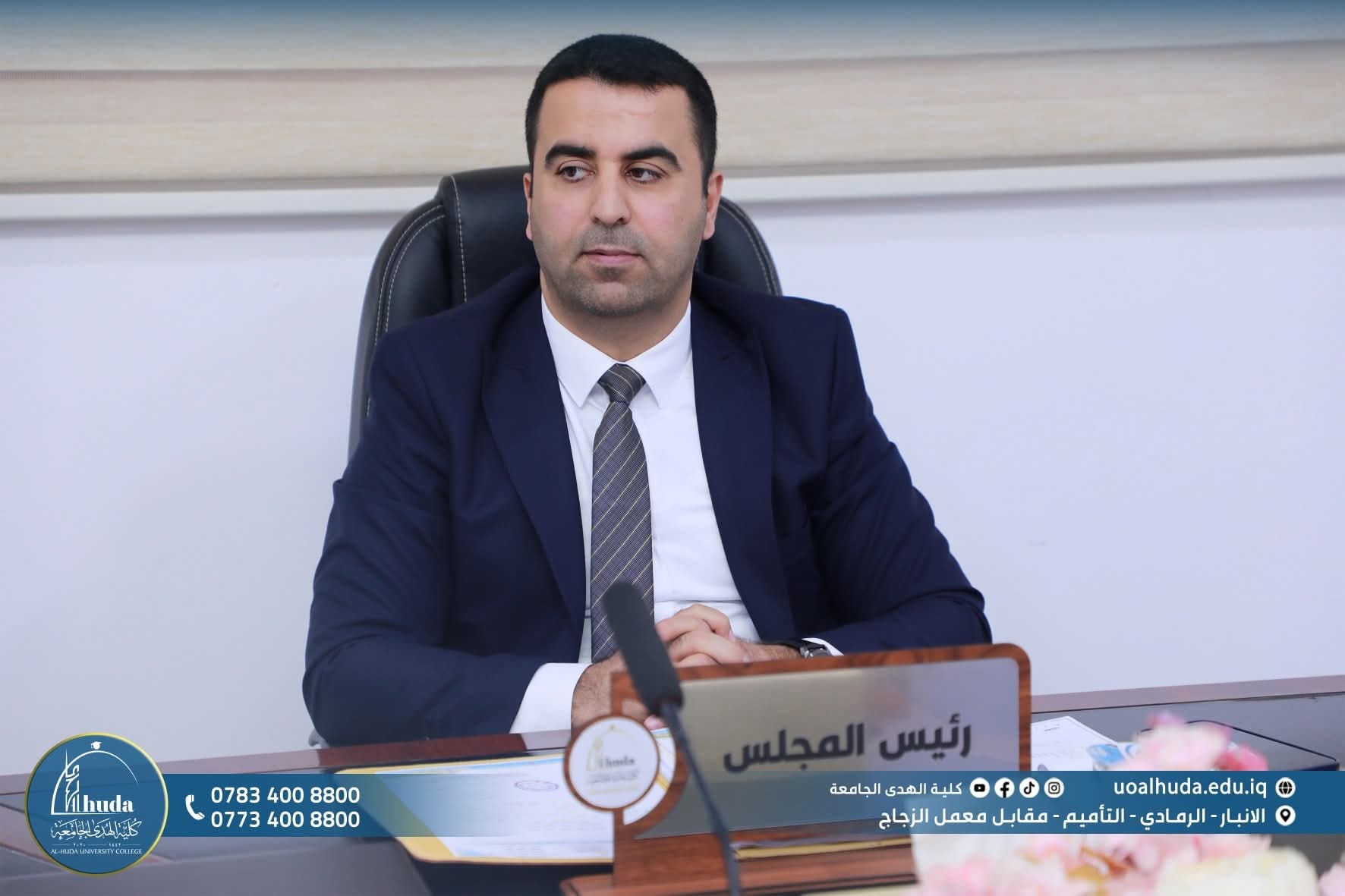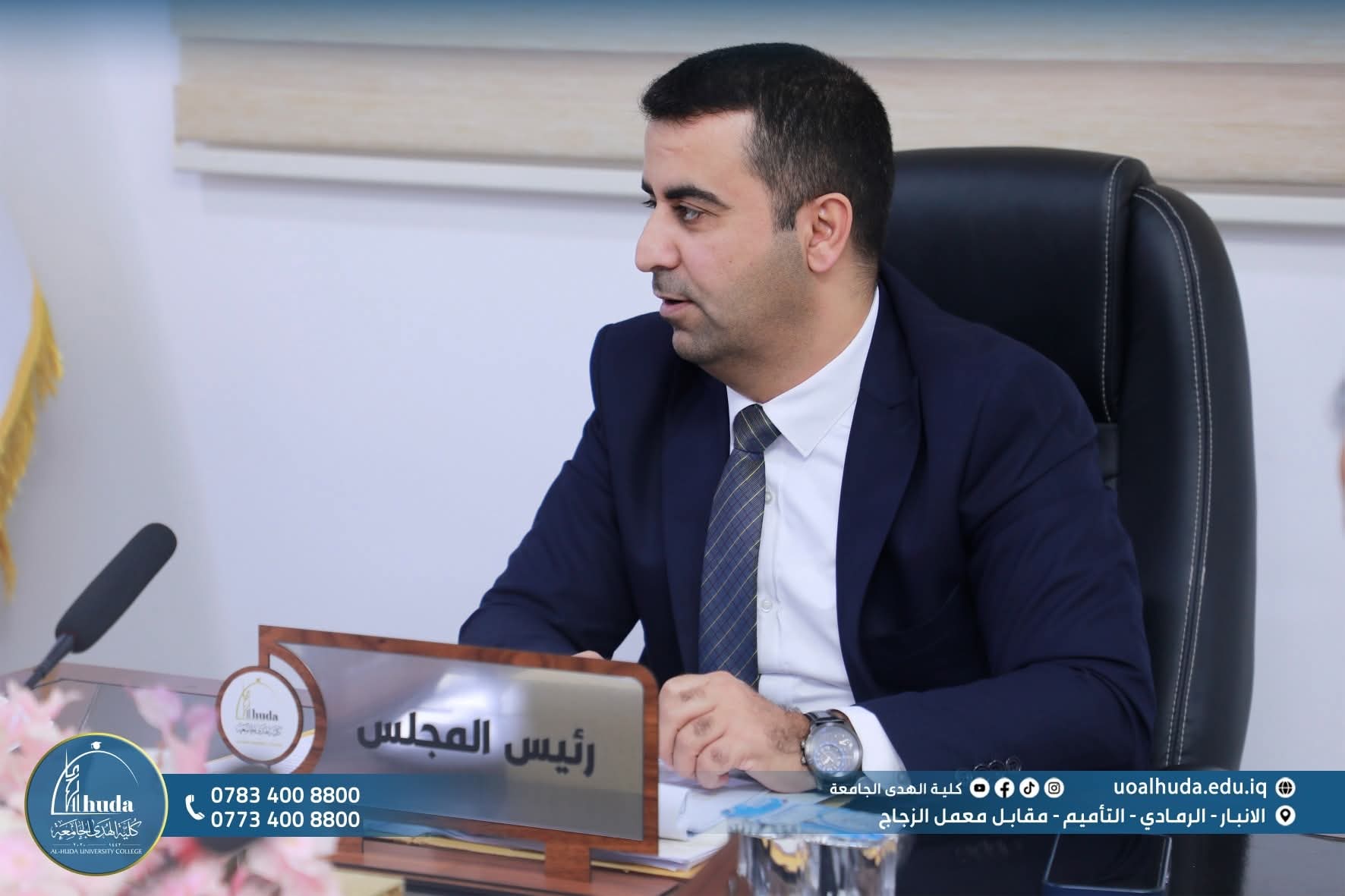 Under the chairmanship of the Dean of Al-Huda University College, Professor Dr. Omar Abdul Kareem Jassim, the College Council held its second session for the academic year (2025–2026) on Tuesday, 9/12/2025, to discuss the most prominent academic and administrative matters included on the agenda.